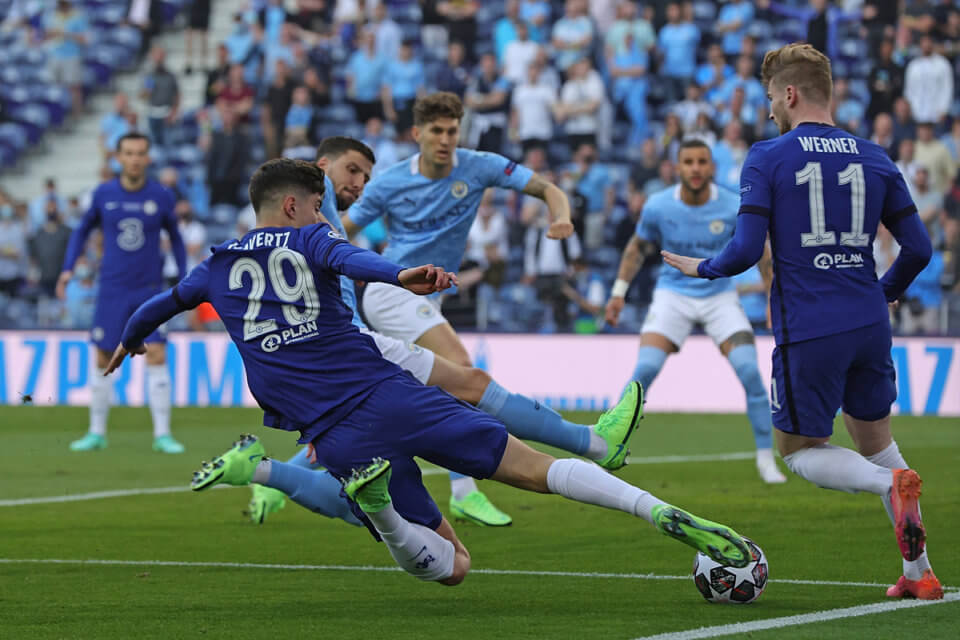 We waited a bit for the first goal in this match, and exactly in the 43rd minute Mason Mount brilliantly looked out Kai Havertz and played perpendicular ball. German passed Ederson running out of the penalty area and kicked to an empty goal.
