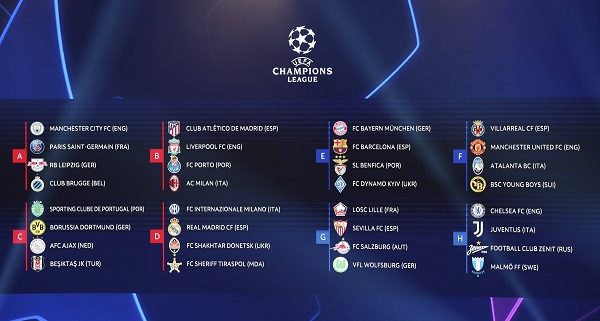 Results of the Champions League group stage draw: